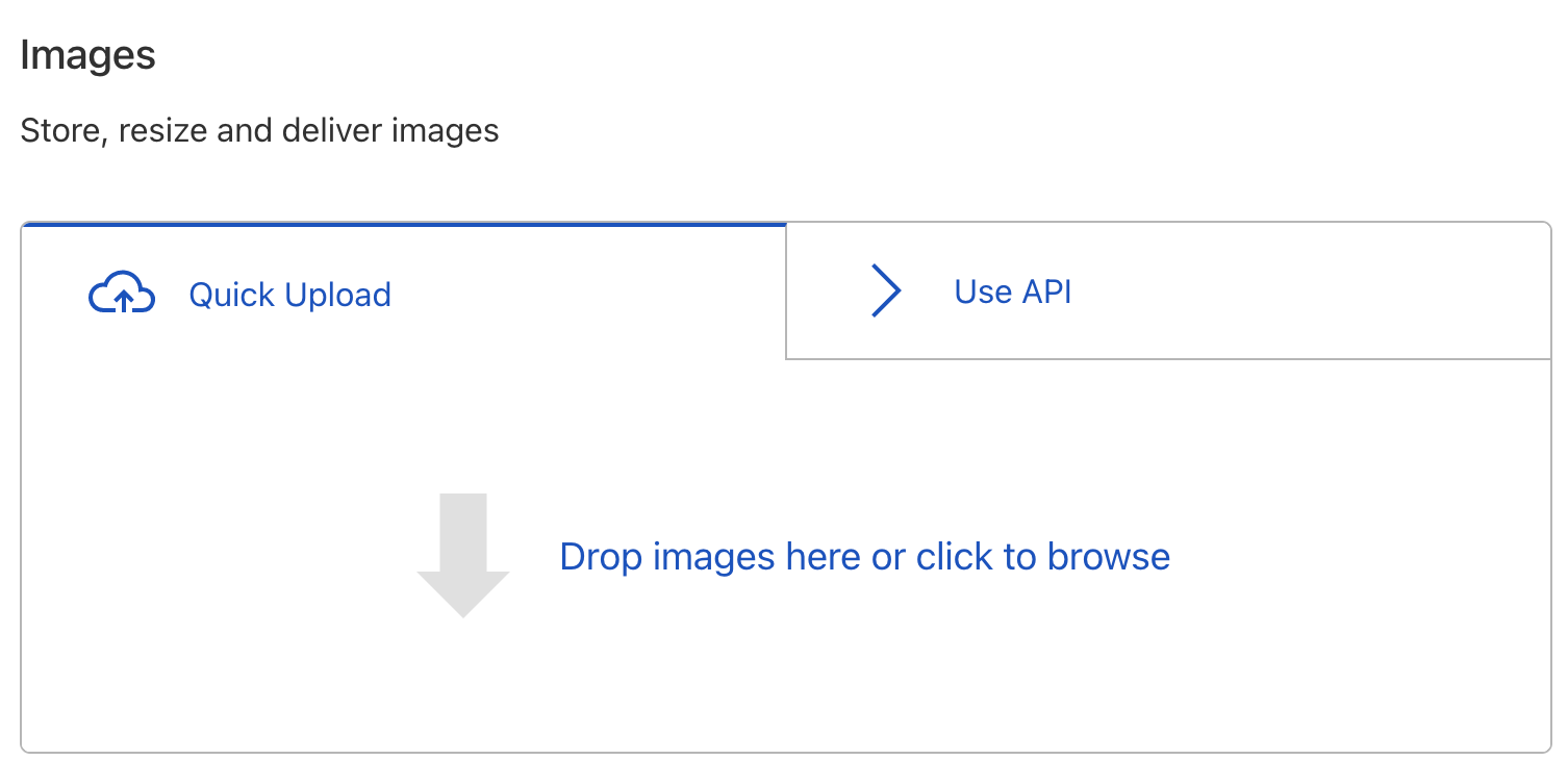 Cloudflare Images allows you to store, resize, optimize and deliver images in a fast and secure manner. To get started, you can upload your images to the Cloudflare dashboard or use the Upload API to do the same.